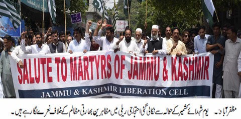 Speakers representing huriyat organizations and political parties of the state strongly condemned Indian state terrorism and said the troops are committing war crimes in the Occupied Kashmir. Later a rally was taken out. The participants belonging to all walks of life having placards and banners in their hands chanted high pitched anti-Indian and pro-freedom slogans.